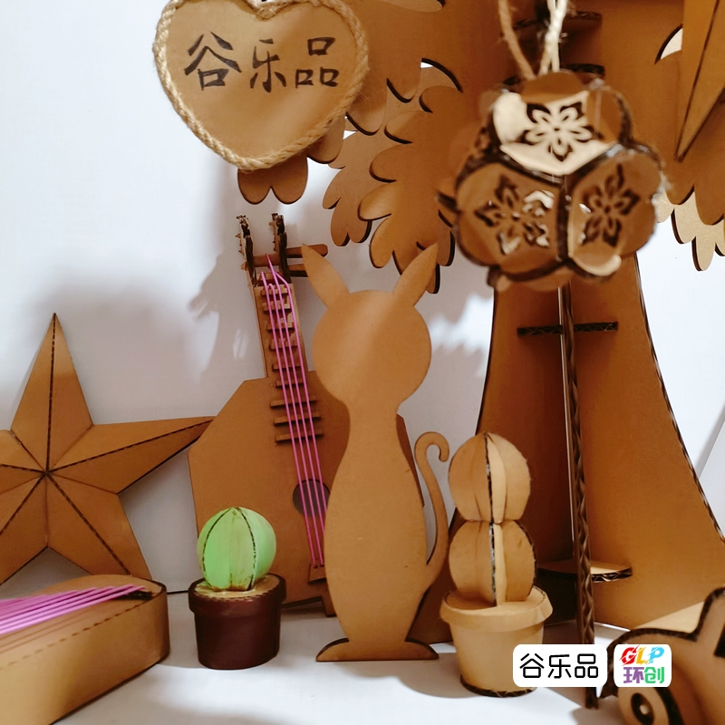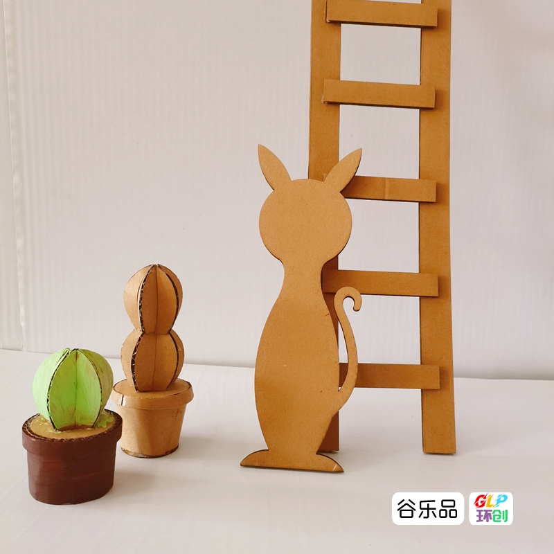 手工纸板创意仙人掌小猫梯子