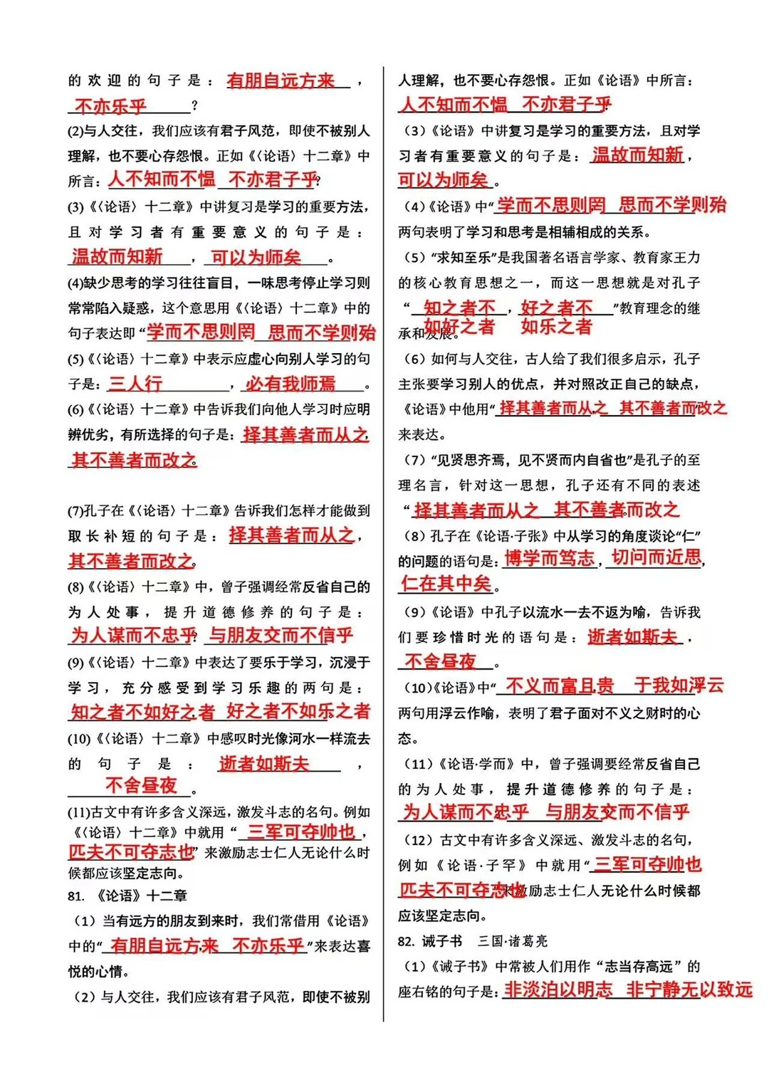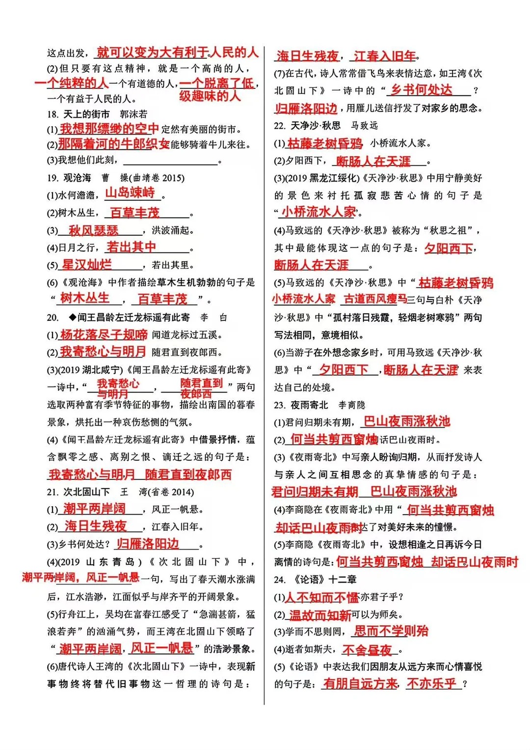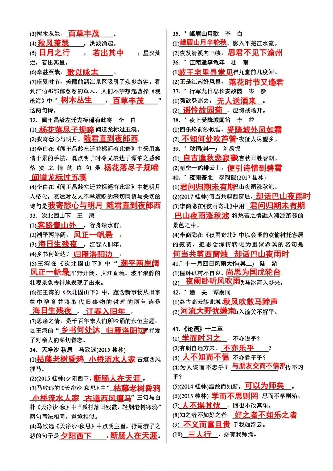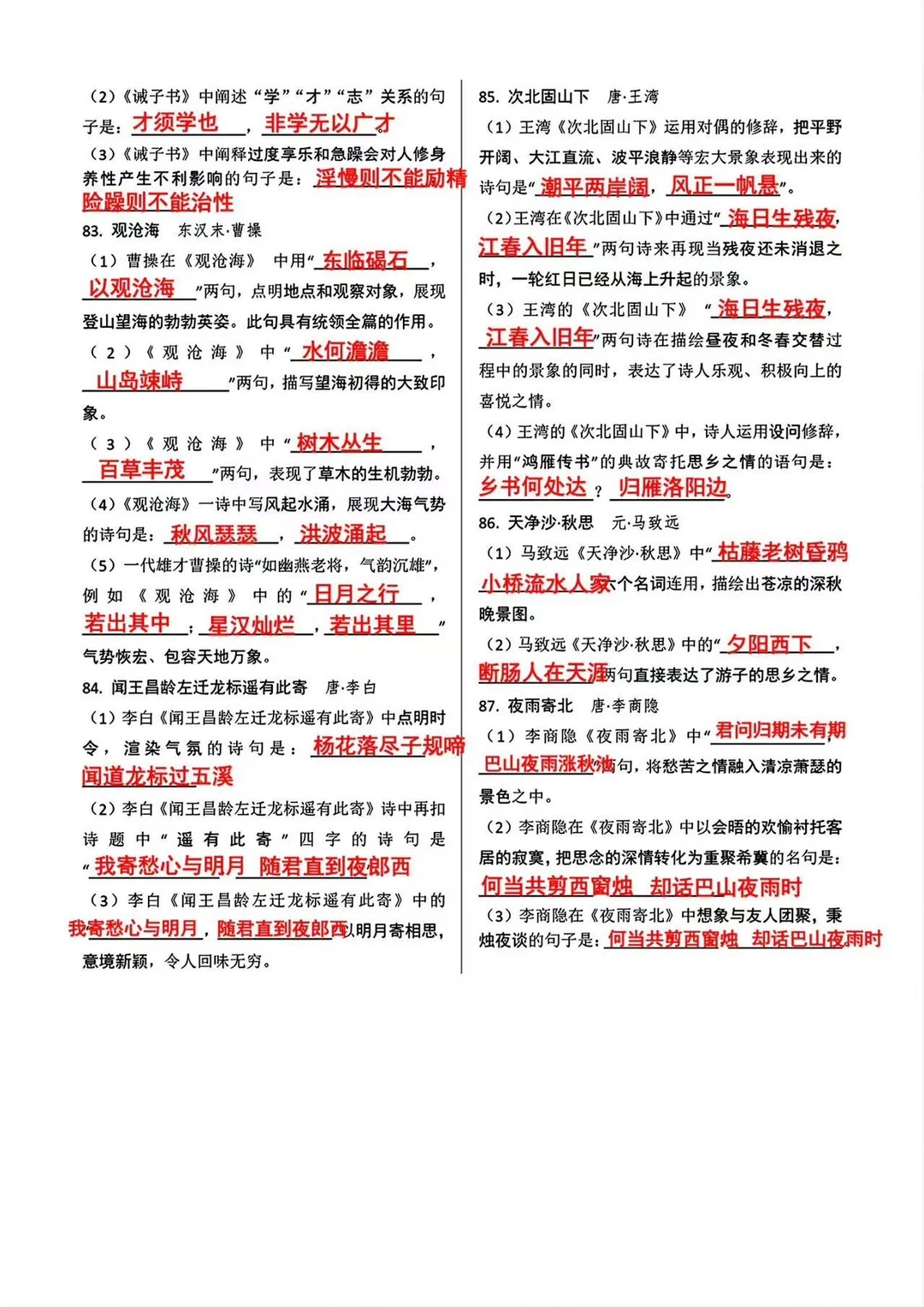 新初一万万不能错过的古诗文重点默写